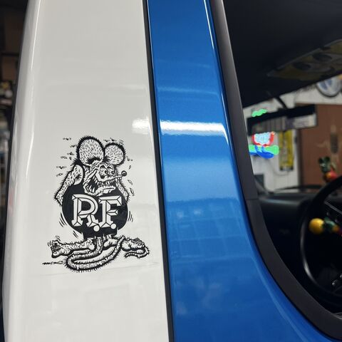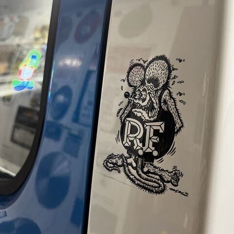 「ラインと、後ろにレタリングと、あとココにラットフィンクのステッカーが貼ってあるみたいに描いて欲しいんですけど・・・」